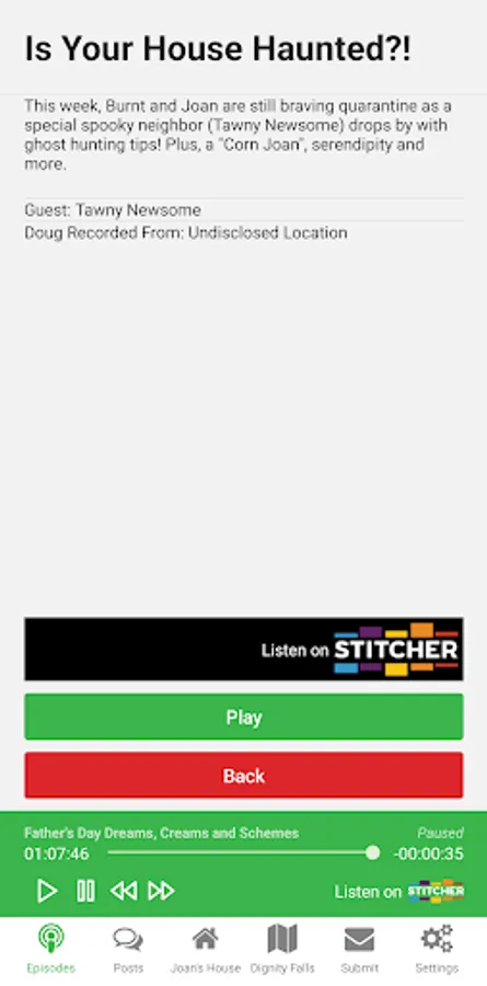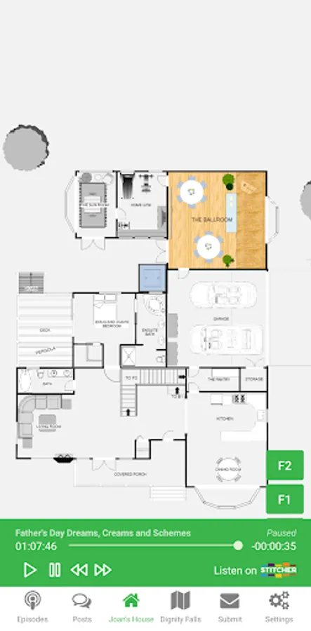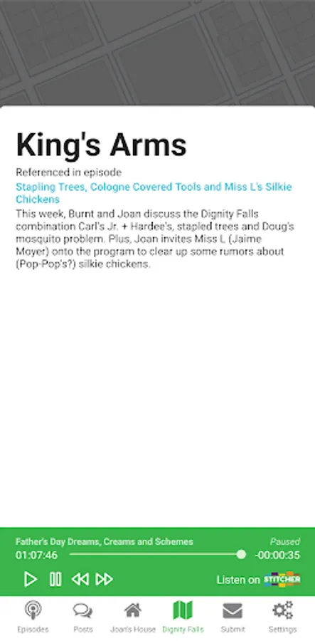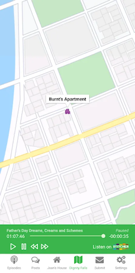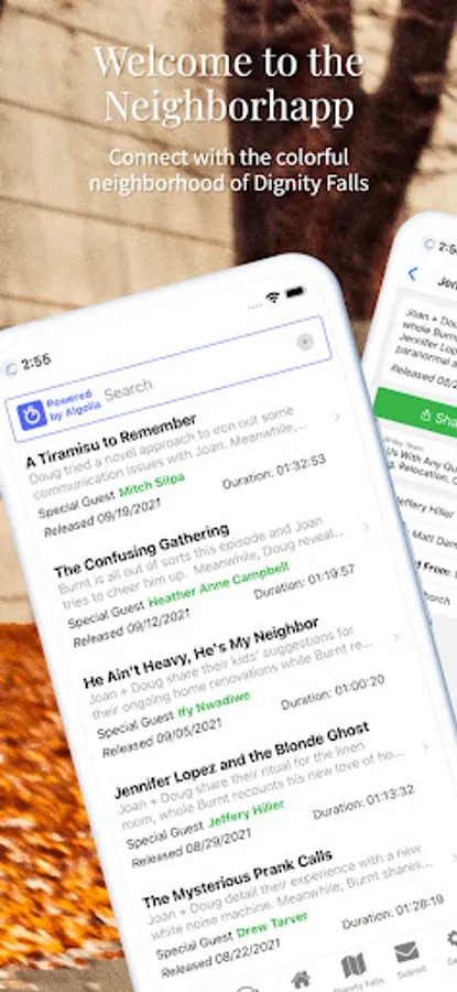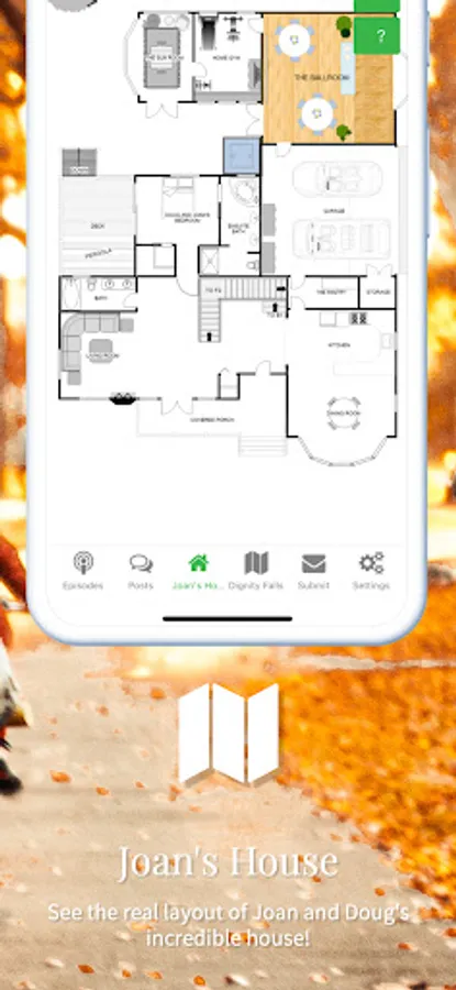 Welcome to the Neighborhapp, the best way to stay on top of activity in Dignity Falls. You can listen to your favorite hosts of The Neighborhood Listen: Burnt Millipede (Paul F. Tompkins) and Joan Pedestrian (Nicole Parker), take a look at Joan's house, look at points of interest in Dignity Falls, and more!