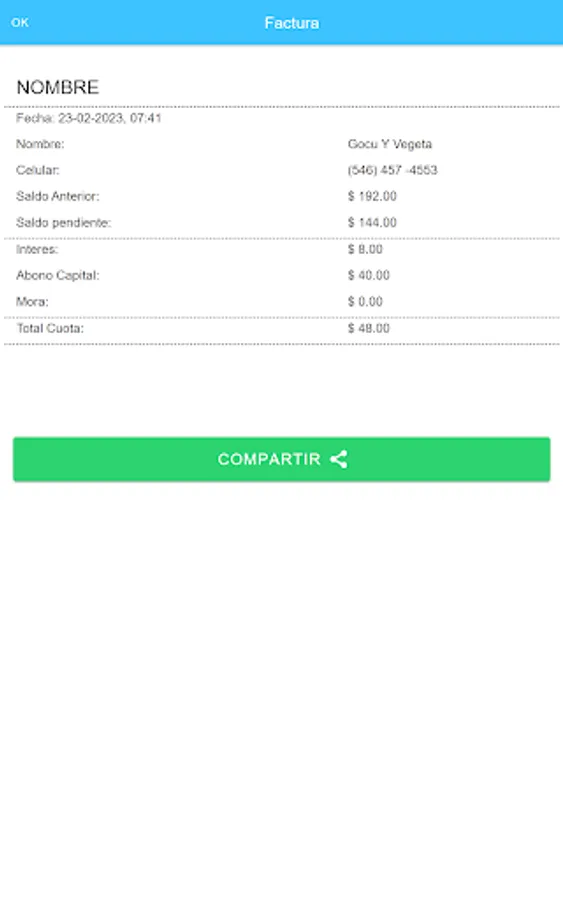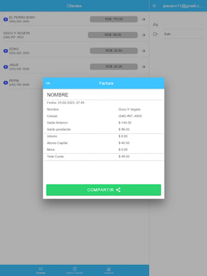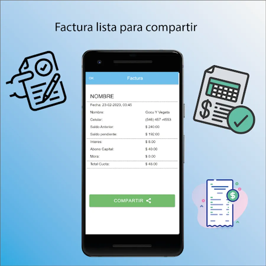 The app has cloud storage so that no data is lost, it also has a notification system to know on what date the corresponding payments must be made.