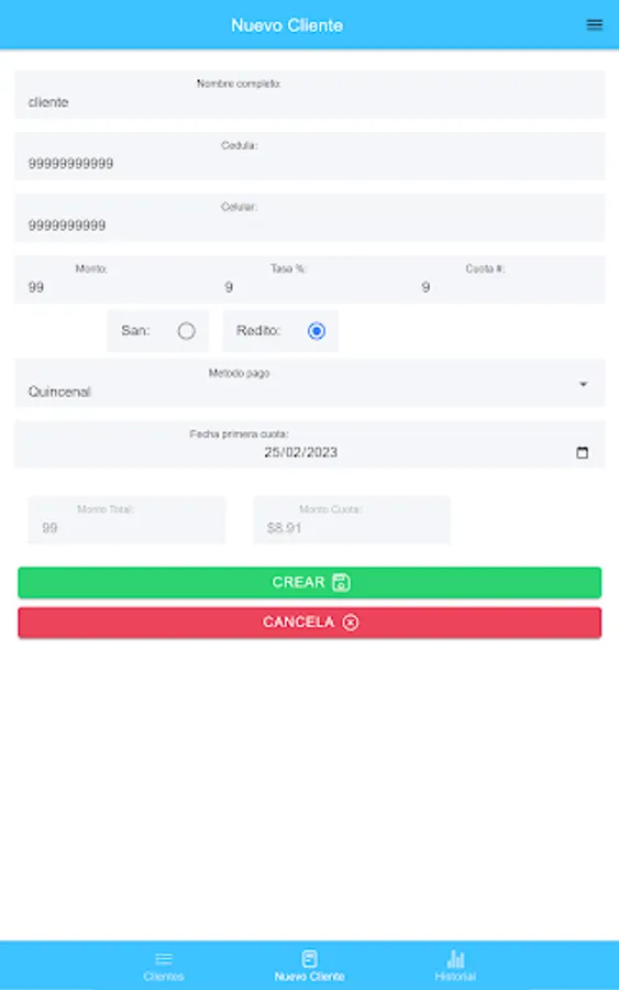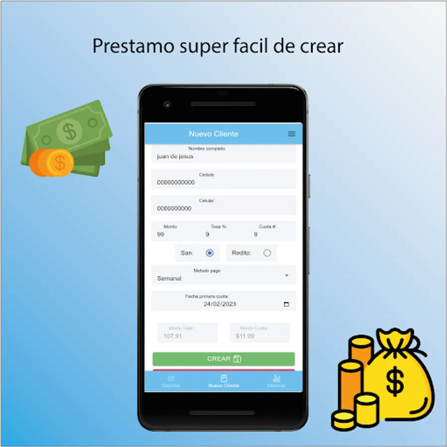 PrestApp is an application thought and designed to create loans and be able to follow up without complications.