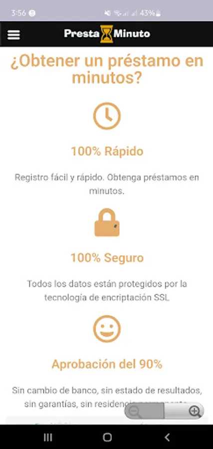 Prestaminuto does not charge any fees for connecting them with lenders. You agree to allow participating lenders to verify your information as part of the process of submitting this application.