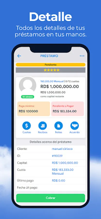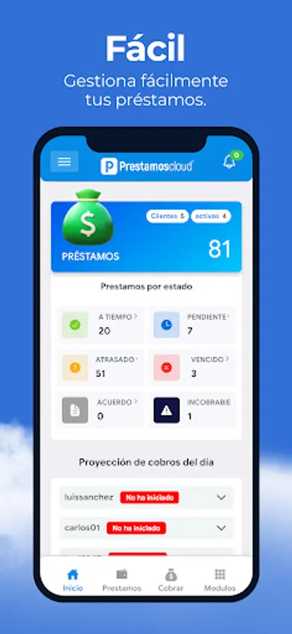 CLOUD loans is a tool that has total management of your loans or transactions, customer management, expenses, interest control, calculation of arrears, among others. Special for micro-credit companies.