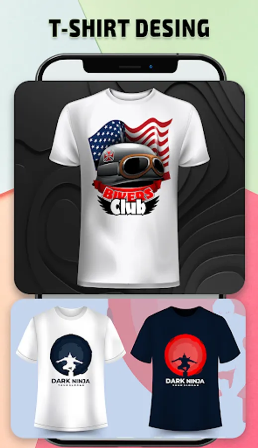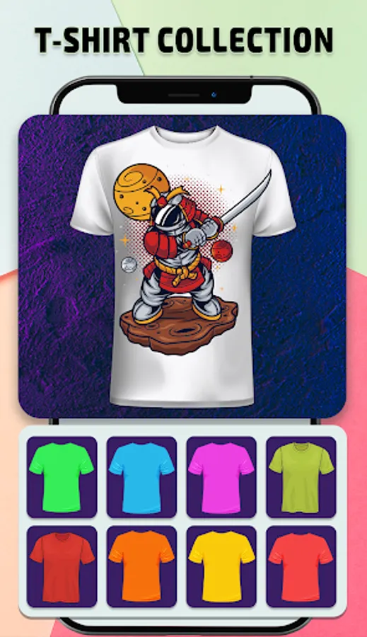 T-shirt design is very easy to use app with tons of Arts, Colors, T_Shirts & Textures.
