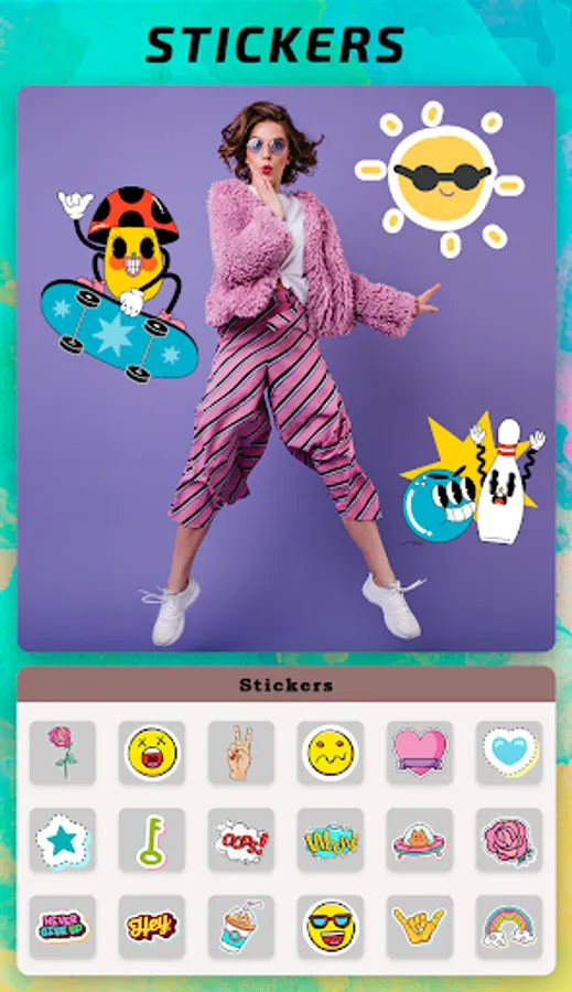 Choose from over 300 funny stickers that can lend a festive touch to your photos. They are updated to stay on trend. Besides, there are a variety of unique makeup stickers, such as neon, birthday, makeup, hair, and more. Try adding emojis or makeup stickers to your collage, and see how your creation can be unique.