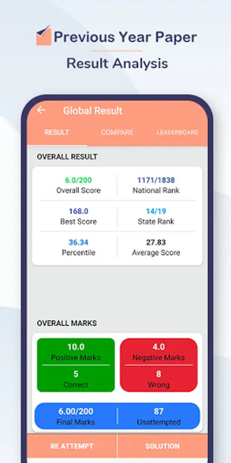 In this app you can find Previous Question Papers in MCQs Real Exam format and after attempting Test you can check Detailed Solution as well as your All India Rank.