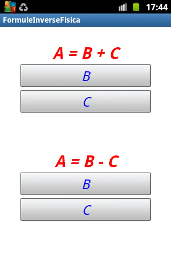 Pressing the B, C, K, the application obtains the unknowns by the formula written above.
