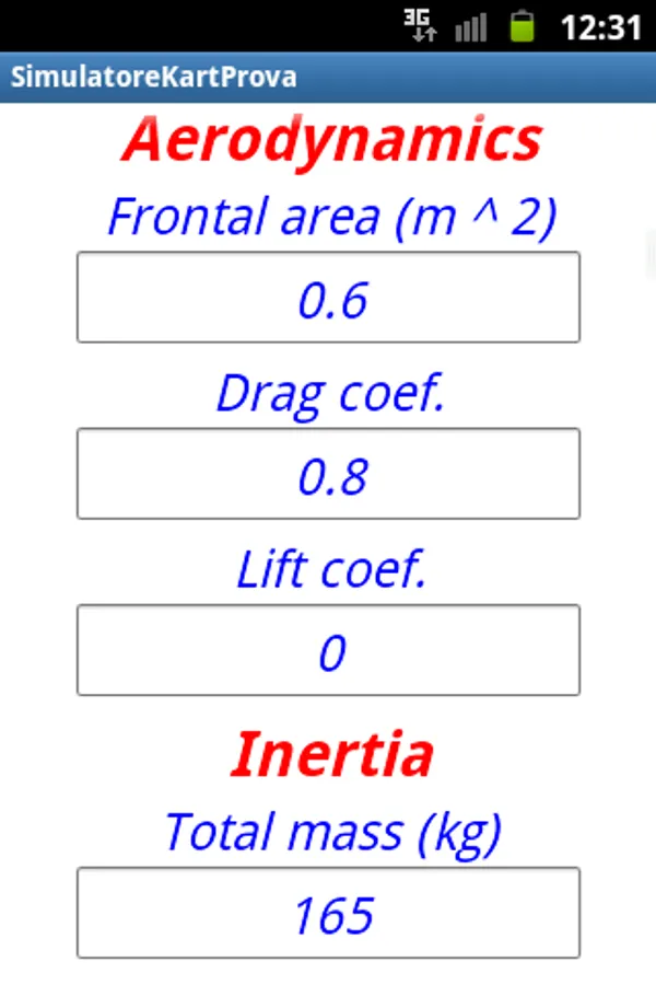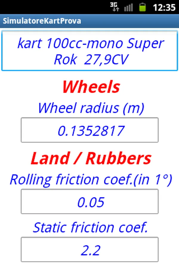 The software does not have a data acquisition system, the data must be entered manually, for example in the case of power-speed curve, starting from the power curve of the engine or power output measured at the wheel counter. Alternatively, using the curve of the example and modifying it.