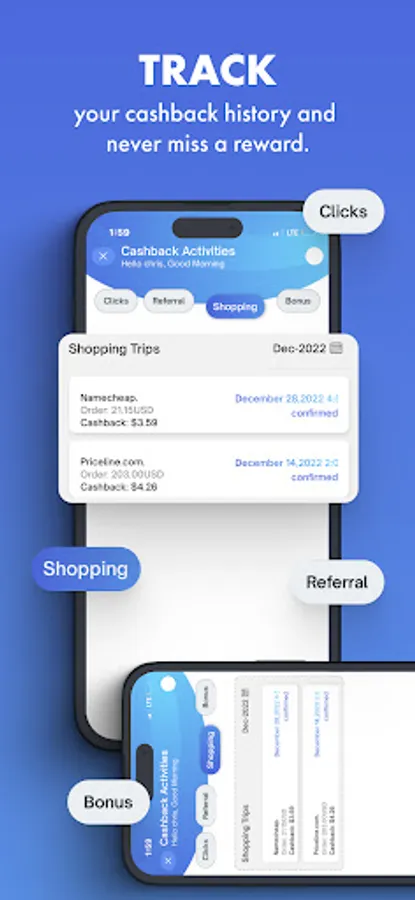 We also have a referral program, where you can refer the app to your friends and family and earn cashback rewards for each referral, so the more you refer, the more you earn! And you can check your purchase history and account information in our user-friendly account section.