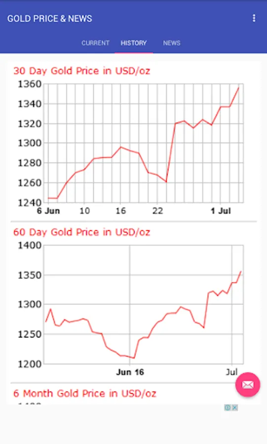 You can follow the latest gold news along with the gold price in real time. Month and year based gold price charts are also provided.