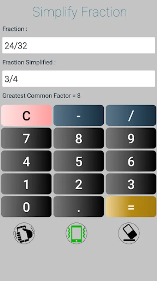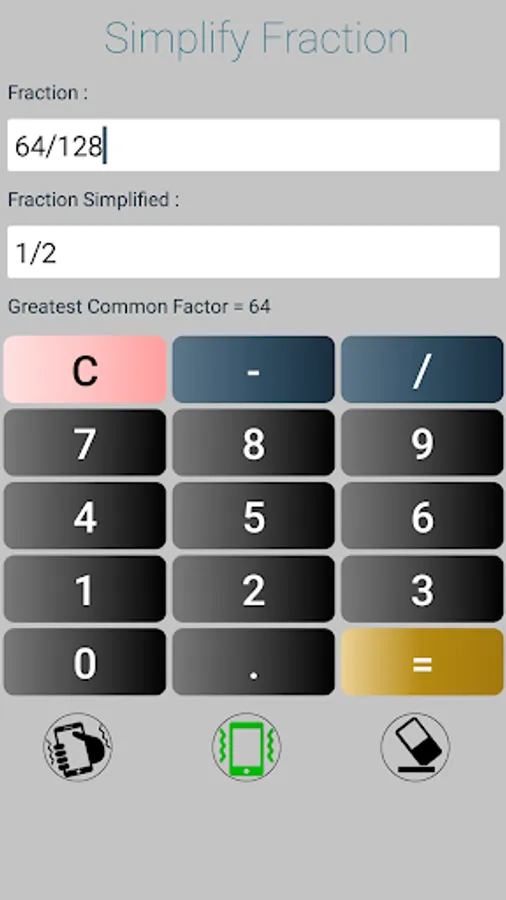 There are several metods for simplifying a fraction, this app will use this method for reducing your fractions,
