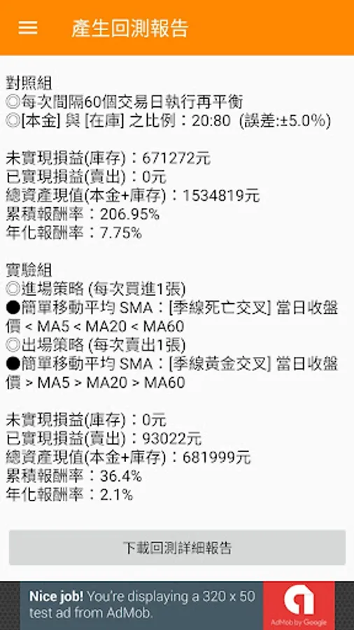 相較於一般市面上的回測軟體只提供勝/賠率等數字,定義不明確也沒說明計算方式,且未提供原始資料可供驗證,本產品完整呈現每次進出時間點的股價、交易數量與總資產變化,也有詳細的計算數據,是您在投資路上的可靠夥伴!