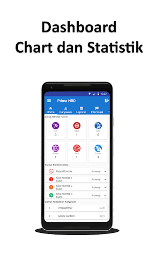 - Payroll monitoring and display employee statistics in the form of an informative Dashboard.