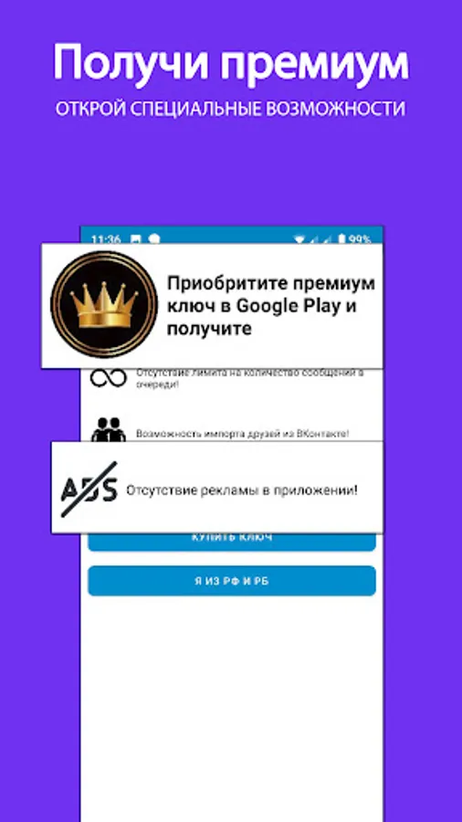 With premium, you can send an unlimited number of messages to the queue, import friends. With premium, you won't have ads.