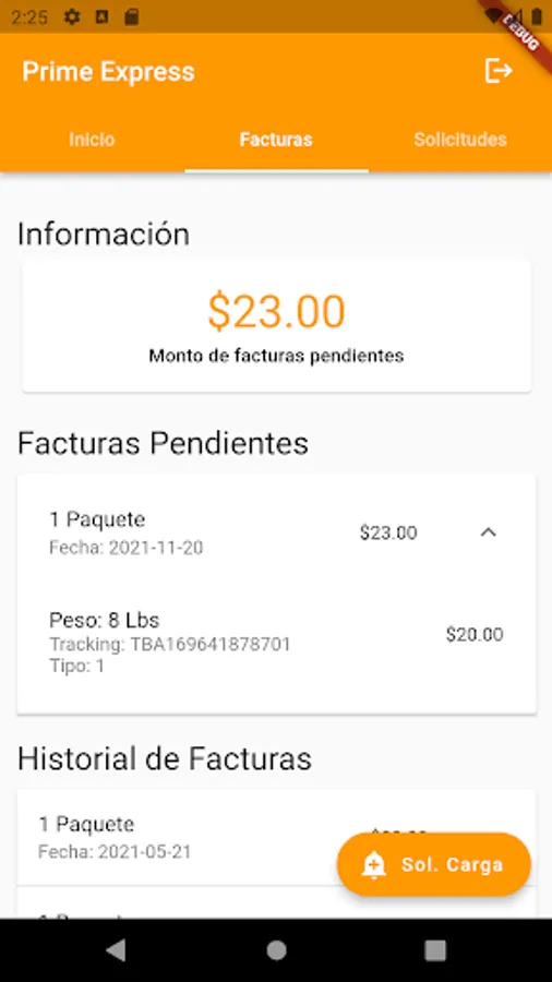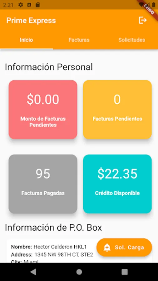 En esta aplicación podrás visualizar tu información personal como cliente de B.O. BOX Prime Express PTY, tales como facturas pendientes historial de carga y mucho mas.