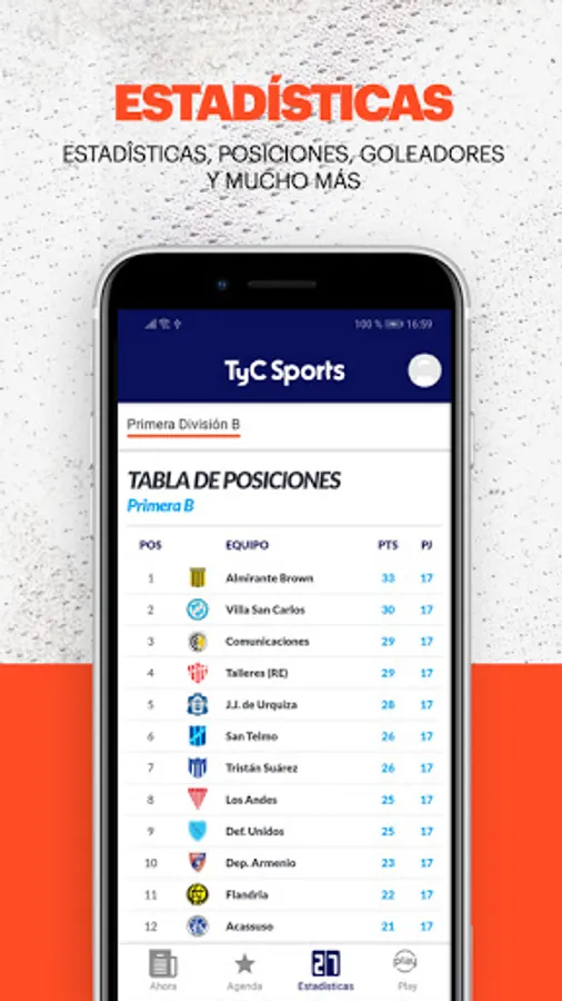 All the football of the First Division B can be found on TyC Sports. All the news and current affairs of the First Division B of Argentine football can be found here. Find out all the news, follow the results minute by minute and watch the matches via streaming And much more!