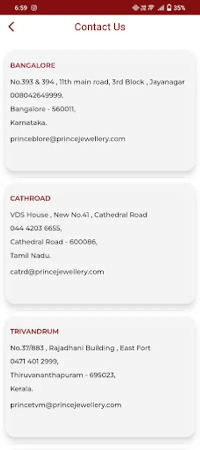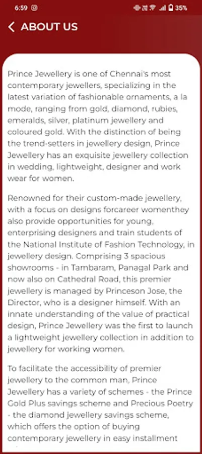 Prince Jewellery is one of Chennai's most contemporary jewellers, specializing in the latest variation of fashionable ornaments, a la mode, ranging from gold, diamond, rubies, emeralds, silver, platinum jewellery and coloured gold. With the distinction of being the trend-setters in jewellery design, Prince Jewellery has an exquisite jewellery collection in wedding, lightweight, designer and work wear for women.