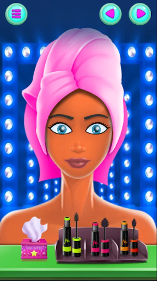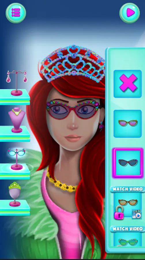 - Dozens of eyes, eye-shadow, hair styles, mascara, lipstick, blush, earrings, necklaces, jewelries for makeup game