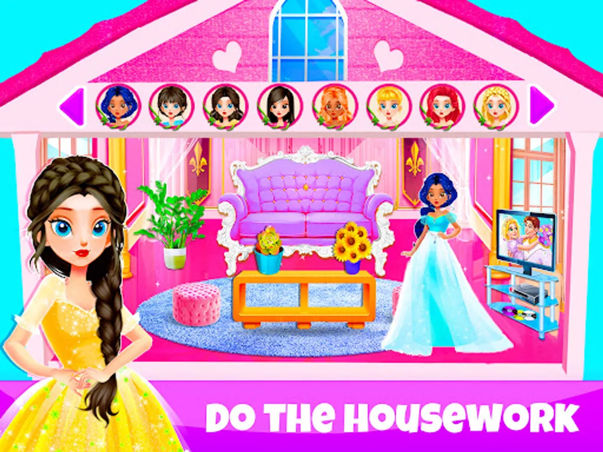 - Pure open-ended family home story pretend play world – Play fun family life in the princess castle game.