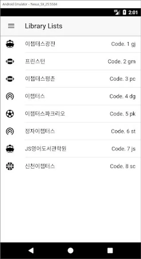 1) 학원 리스트 중에서 본인의 학원/도서관을 선정해야 합니다. (그림 참조)