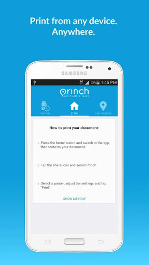 The Princh app lets you easily locate printers nearby and print documents directly from your device.