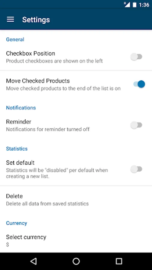 All saved data in the statistics can be deleted permanently with just a few clicks. All this data lives only inside Privacy Friendly Shopping List and can not be accessed from outside.