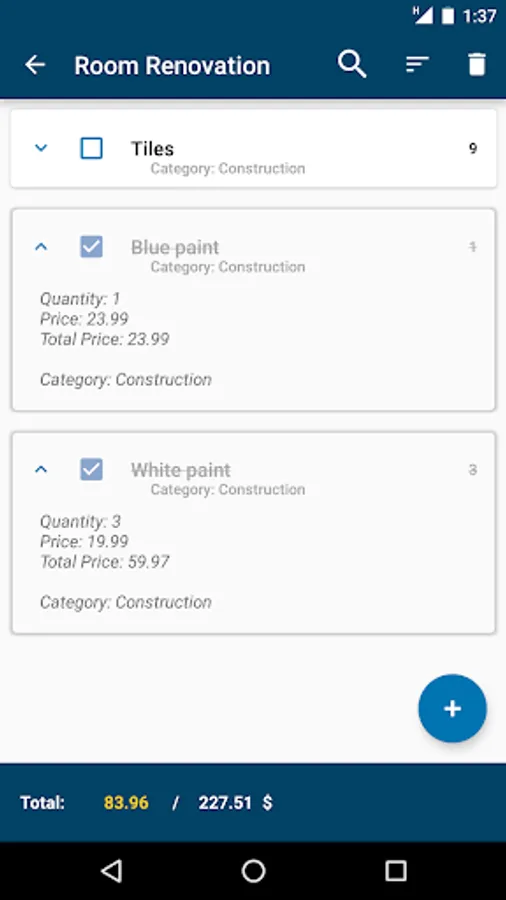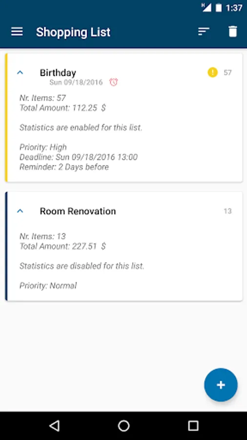 Create shopping lists and managing them (adding, editing and deleting of lists and items).