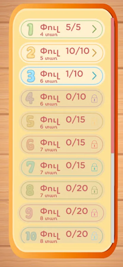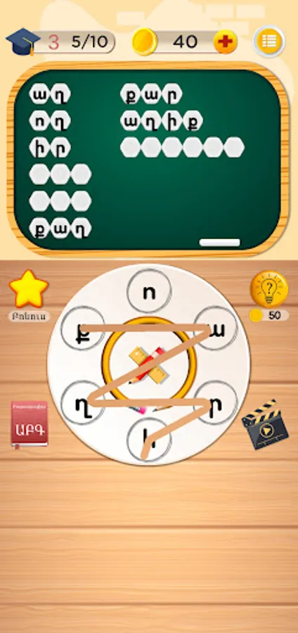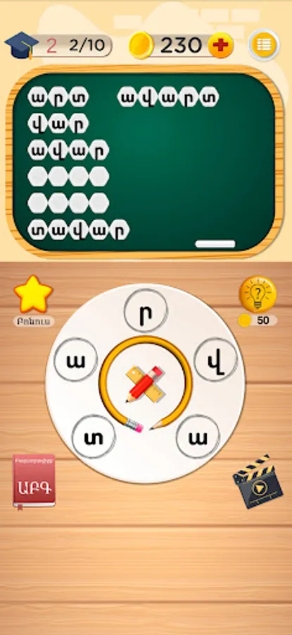 Բառերը The words that are not included on the board will be accumulated in the cumulative words section, bringing you 10 points.