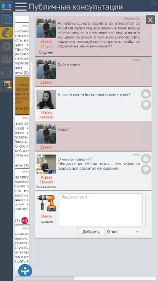 The public consultation conducted by professional experts and beginners.