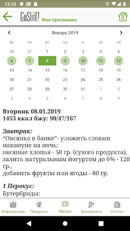 After downloading the application, you will get access to your personal account, where you will find a ready-made menu. Nutrition is fully balanced and designed to provide the body with all necessary.