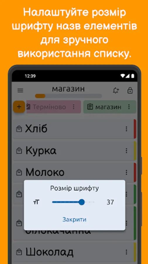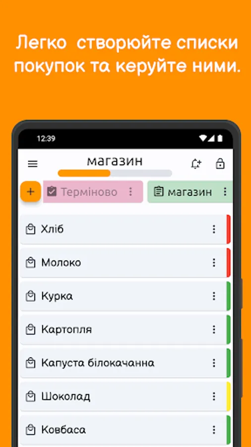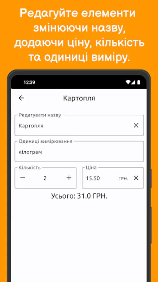 - Editing items - easily edit items in the shopping list by changing the name, adding price, quantity and units of measurement, and if necessary, set color priority labels.