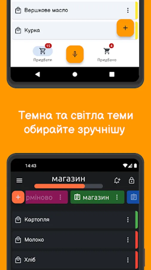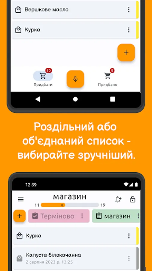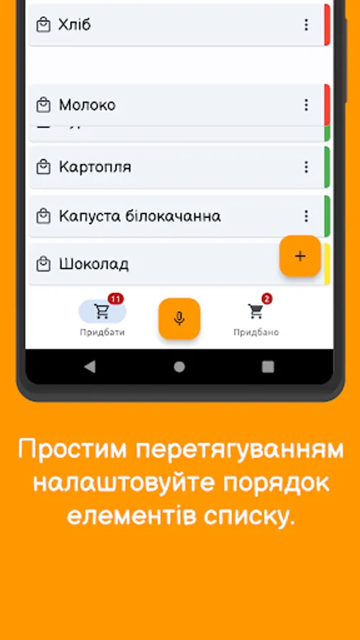 - Add items to your shopping list using voice input or the keyboard. Voice input of elements is possible both one element at a time, and several - using the word separator that is repeated, for example, "and" or "buy" by speaking after or before each product.
