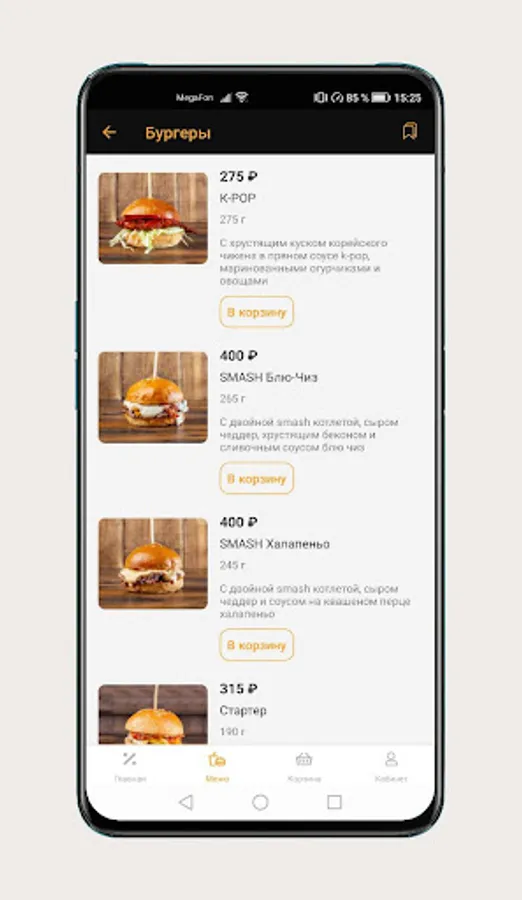 Craft fast food from the popular Kuban chain has become even closer to its fans. Catch a simple, intuitive app that helps you navigate the variety of juicy burgers, as well as arrange online delivery from any restaurant in the franchise. Our advantages: