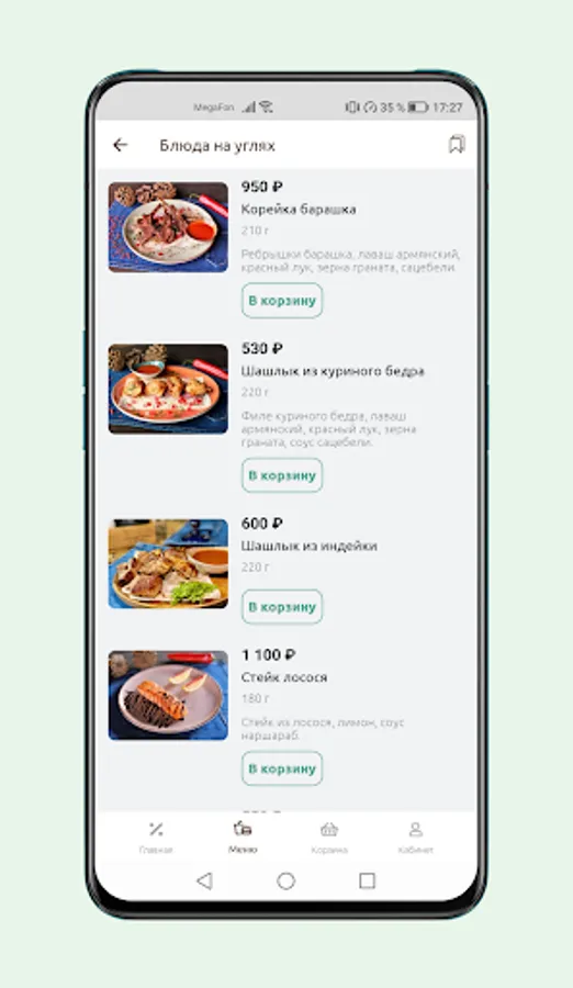 1. A varied gourmet menu. We offer our customers a wide selection of the best dishes, mainly of Georgian cuisine.