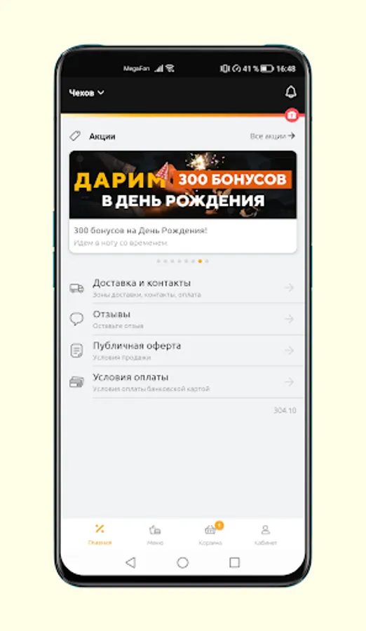 Open the pizzeria mobile app every time you want fresh sushi and rolls. We work daily from 11:00 to 23:00. Attention! In order not to pay for courier services, your order must be at least the specified minimum amount. Pickup from network delivery points: