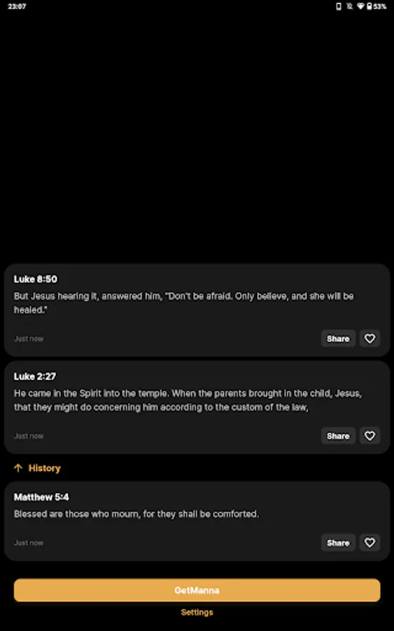 Press the button or shake your device to get a random bible verse. The app contains more than 2000 Bible verses picked out by Elias Aslaksen (© Stiftelsen Skjulte Skatters Forlag)