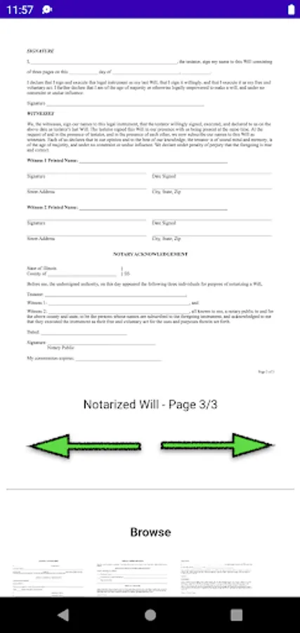 A Will is legal without being notarized, but it is advised for the best possible protection. Each scenario has a notary option where each page is individually notarized to prevent pages from being switched.