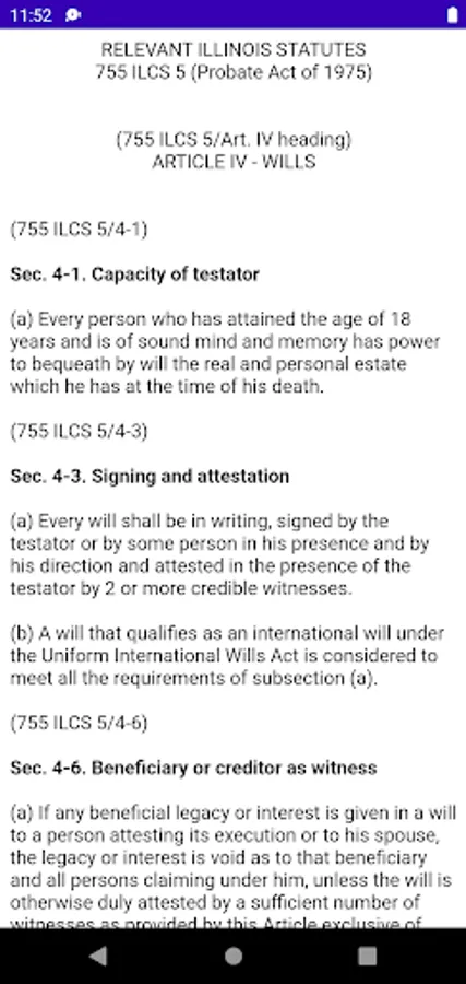 4. Select statutes from Illinois to understand the legal aspects of a valid document