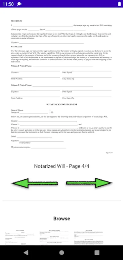 A Will is legal without being notarized, but it is advised for the best possible protection. Each scenario has a notary option where each page is individually notarized to prevent pages from being switched.