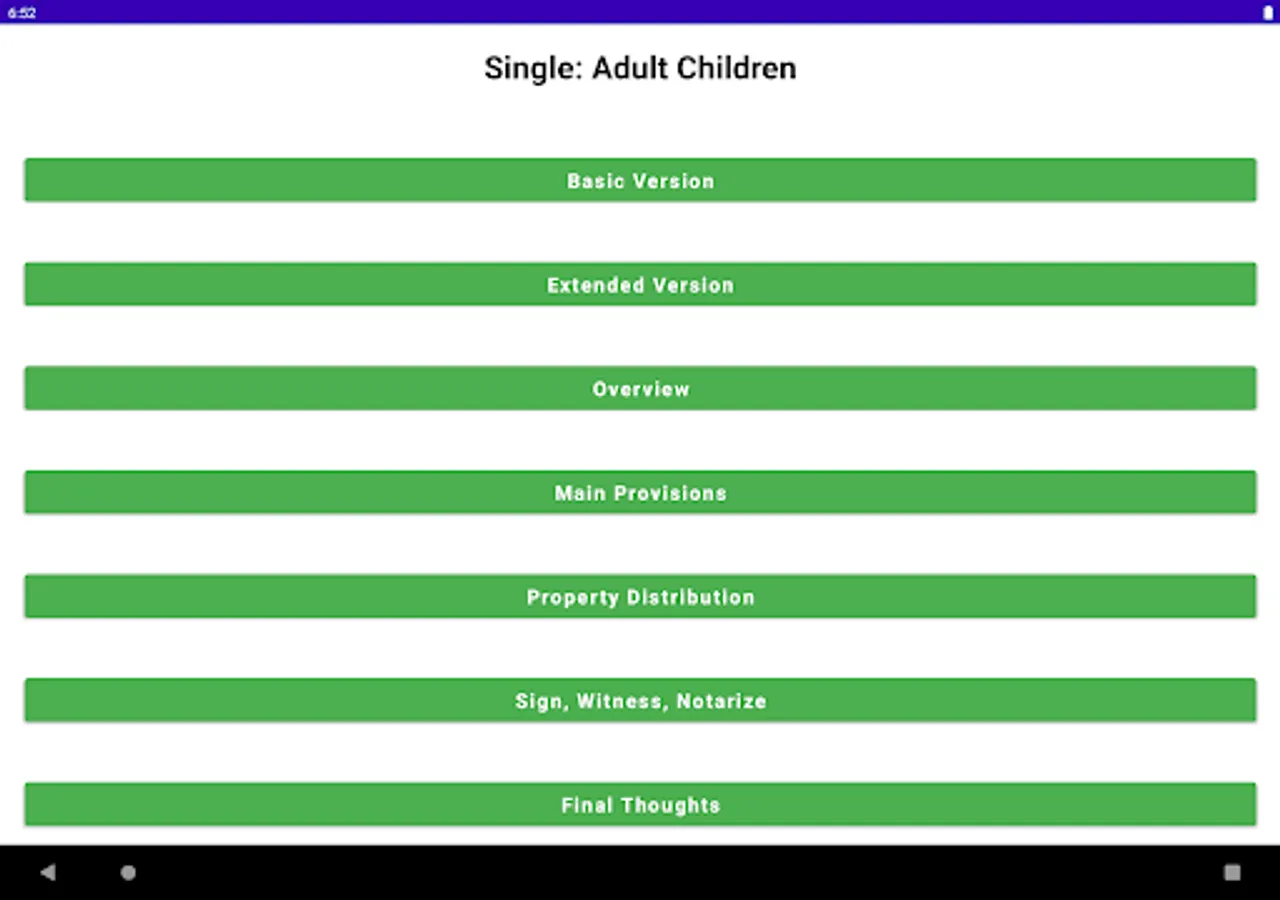 This app is the 6th of a six part series: 1 (Single without Children), 2 (Married without Children), 3 (Married with Minor Children), 4 (Married with Adult Children), 5 (Single with Minor Children), and 6 (Single with Adult Children).
