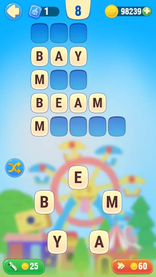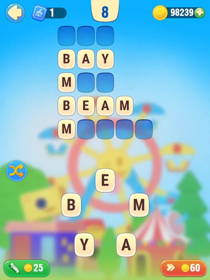 You may shuffle the letters or use hints if you are stuck on any puzzle.
