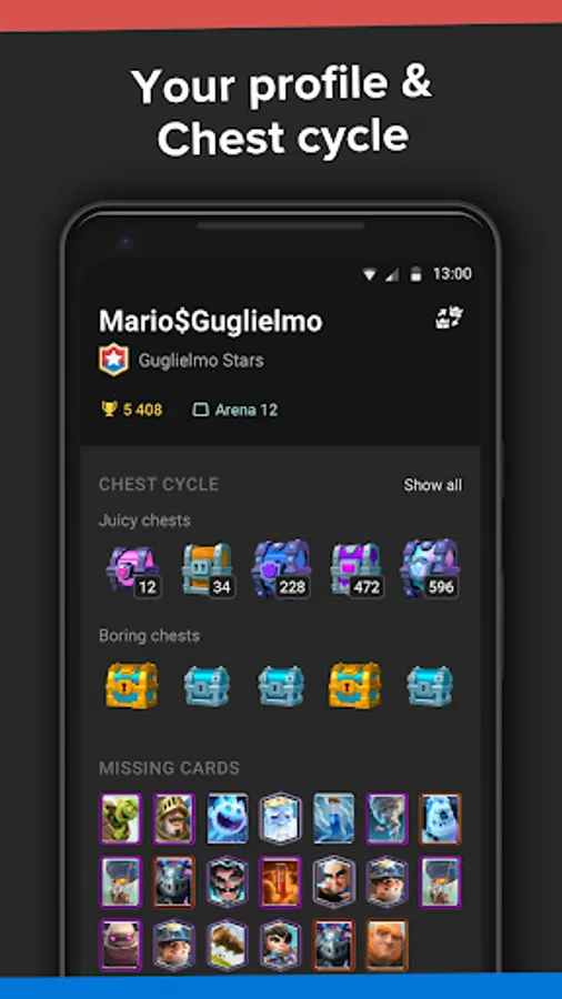 Deck Shop for Clash Royale official app! Get unlimited deck slots and fill them with the best decks in the game. Save your profile, track your chests, see your battles, create new decks and check them.