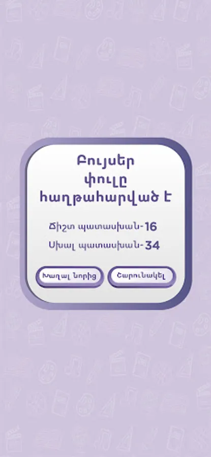 Ճիշտ The more correctly you answer the questions, the higher you will rank in the rankings.