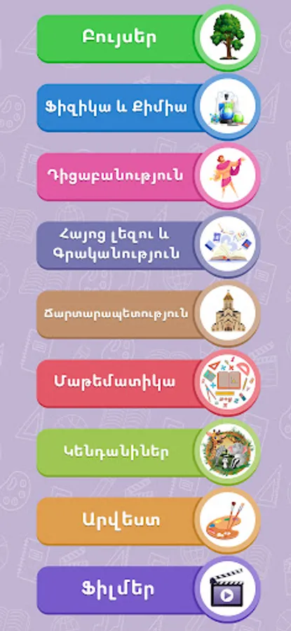 Կարգ Each selected category has 50 interesting questions that need to be answered correctly.