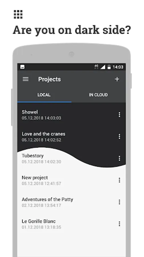 • creation of projects on the device and in the cloud service (ability to work with KIT Scenarist's cloud is an additional service);