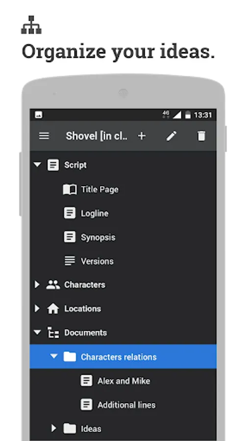 KIT Scenarist will allow you to have at hand all your screenplays. You can write down ideas, work out dialogues of characters, or describe actions without leaving the hammock. Send the script to the editor by mail during a trip on the subway. And even edit projects at the same time as your co-authors from different parts of the globe.