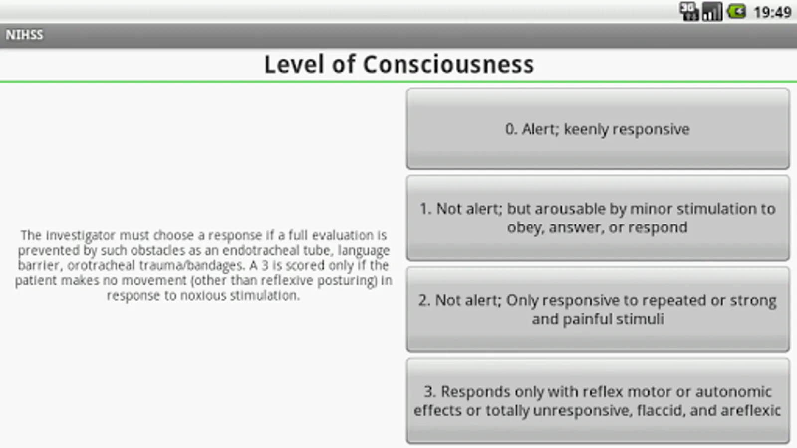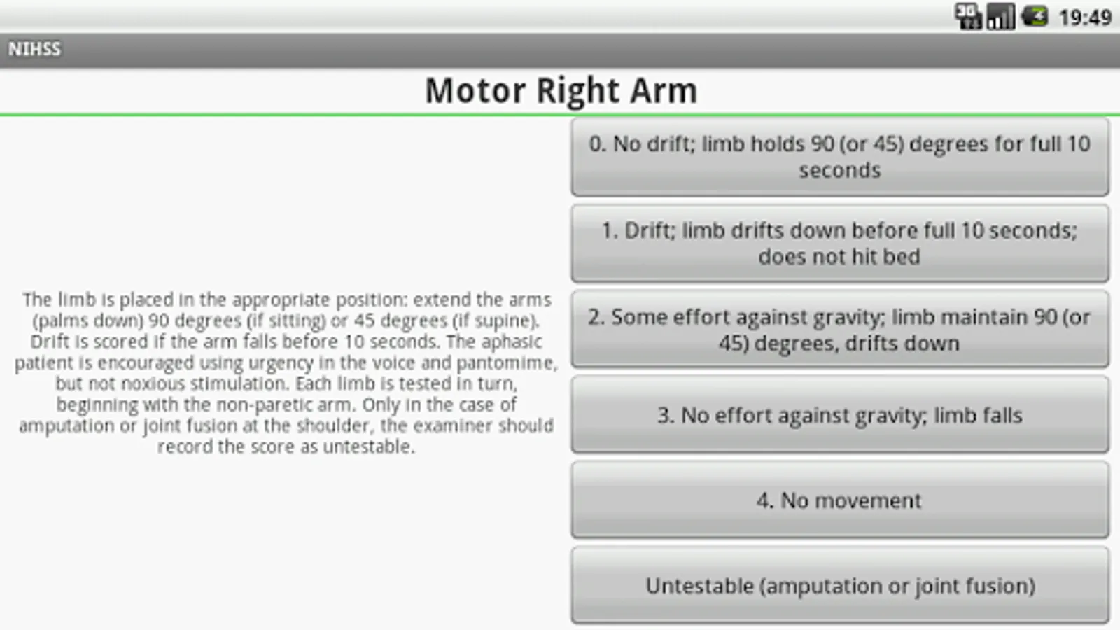 The program allows you to conduct a rapid assessment of the severity of neurological deficits in stroke scales with the National Institutes of Health Stroke.