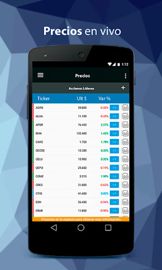 Prices in real time and access to detailed information on each species.