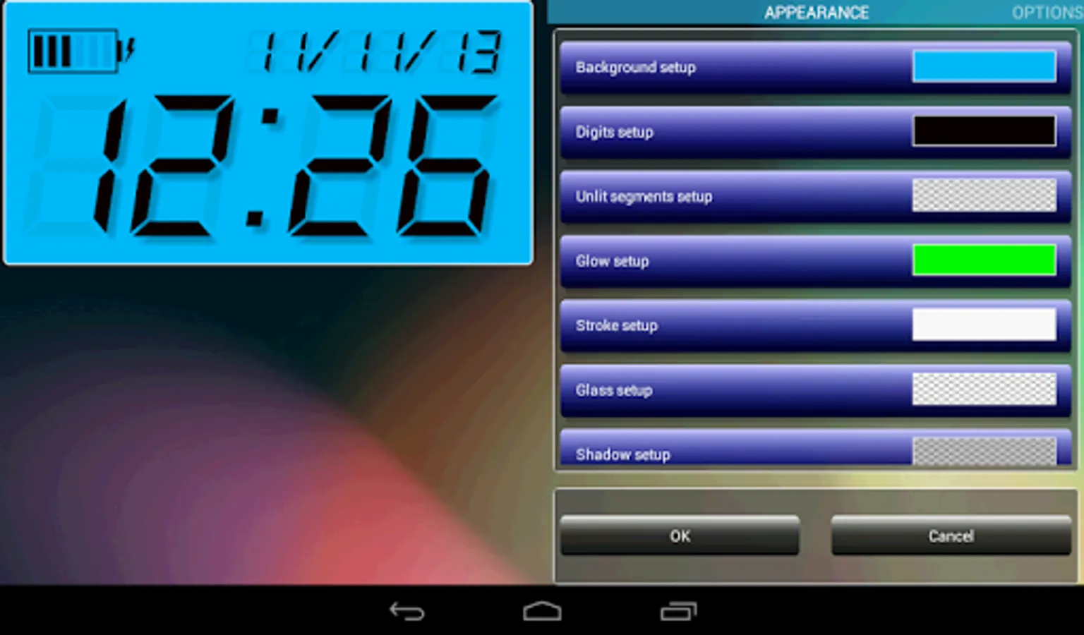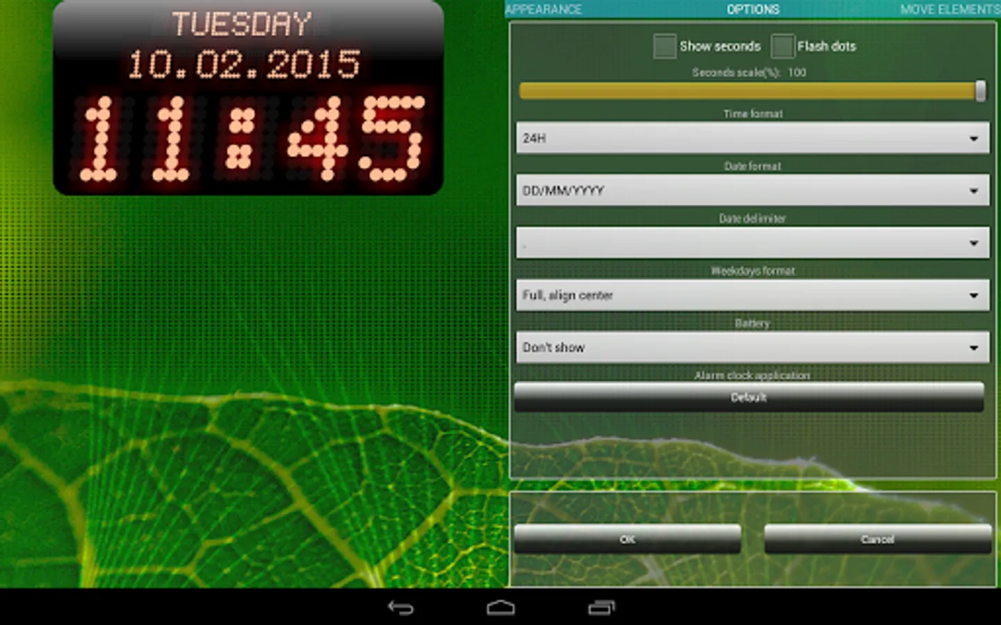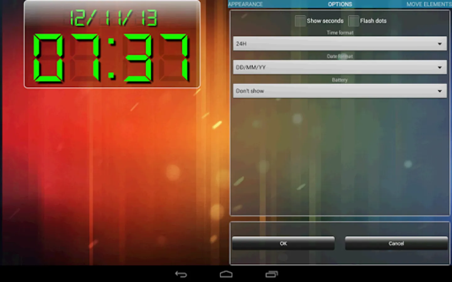Seconds/flashing dots display (this mode requires frequent widget update, which can lead to increased battery consumption)