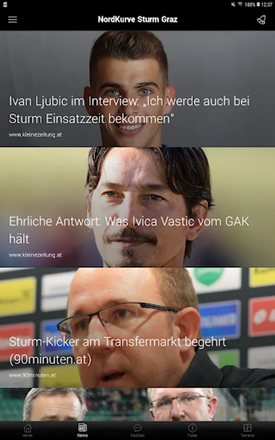 With the Nordkurve app you're in the middle of fan events of the famous fan groups it with. The app provides all social media posts the official channels and the fans who post in and around the stadium. The latest news from the newspapers about the history, the club from Graz are displayed within the app clearly.