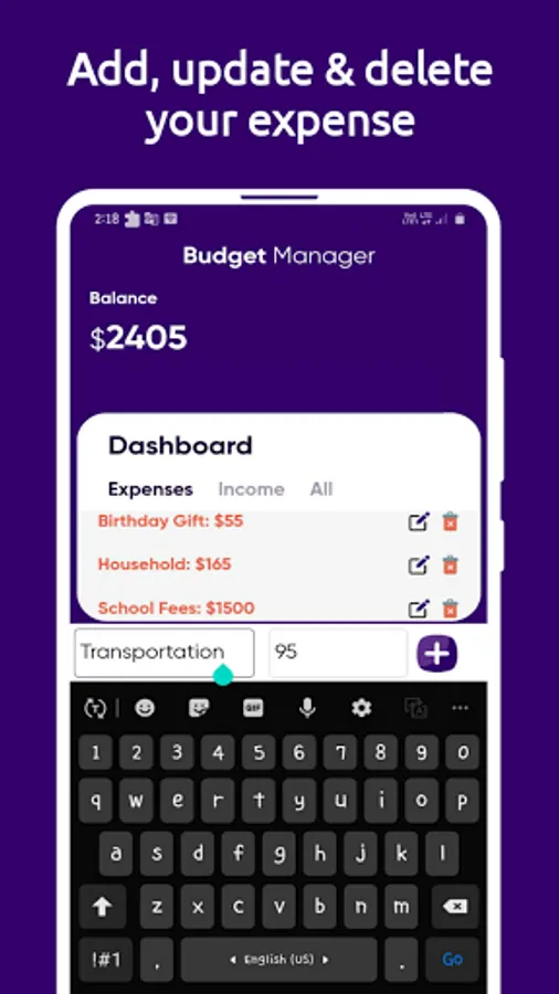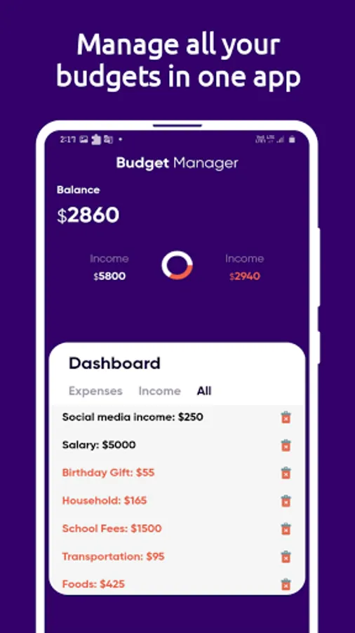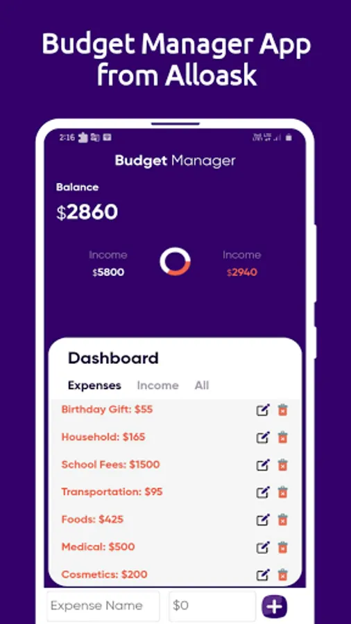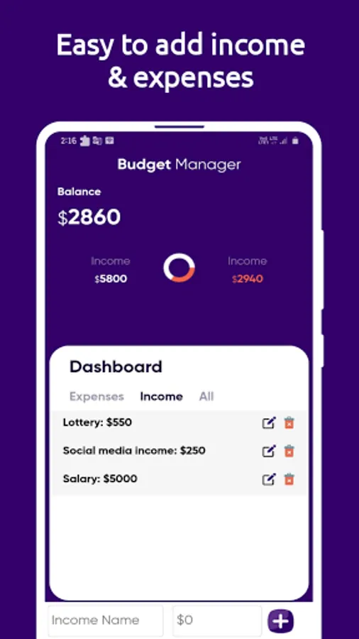 Manage your income and expense. Add your income and expense with name and cost. You can edit the income and expense whenever you want. It calculates the balance amount form your added income and expense and display the balance amount to you. Manage your money related things using this app. This app can be also called as expense tracker or money manager. No advertisements in our app helps you to use our app without any disturbance.
