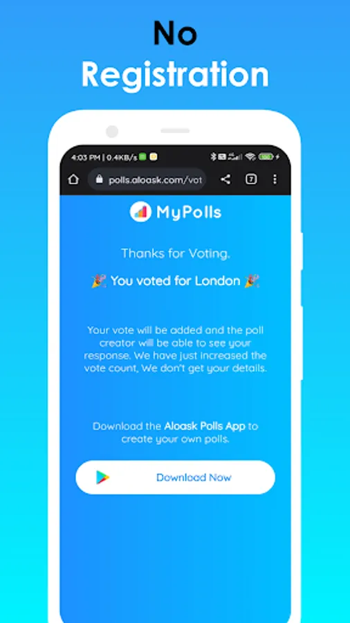 ✨ We don't collect any personal information of yours or the people who vote to your poll. So, you can use our app without any difficulties.